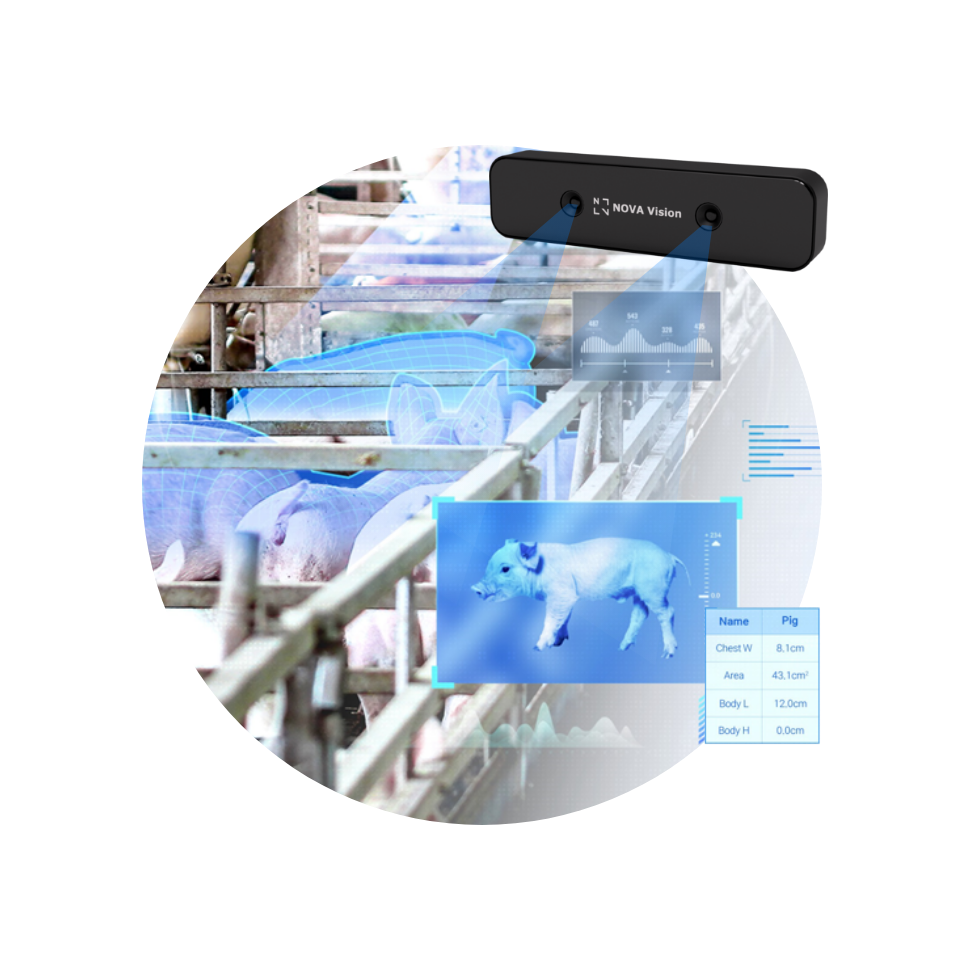 3D 컴퓨터비전 기반 인공지능 기술을 통해 가축 체중을 비접촉으로 측정하고, 출하시기, 건강상태, 사료 소비량 등을 결정하여 농장의 생산성을 높입니다.